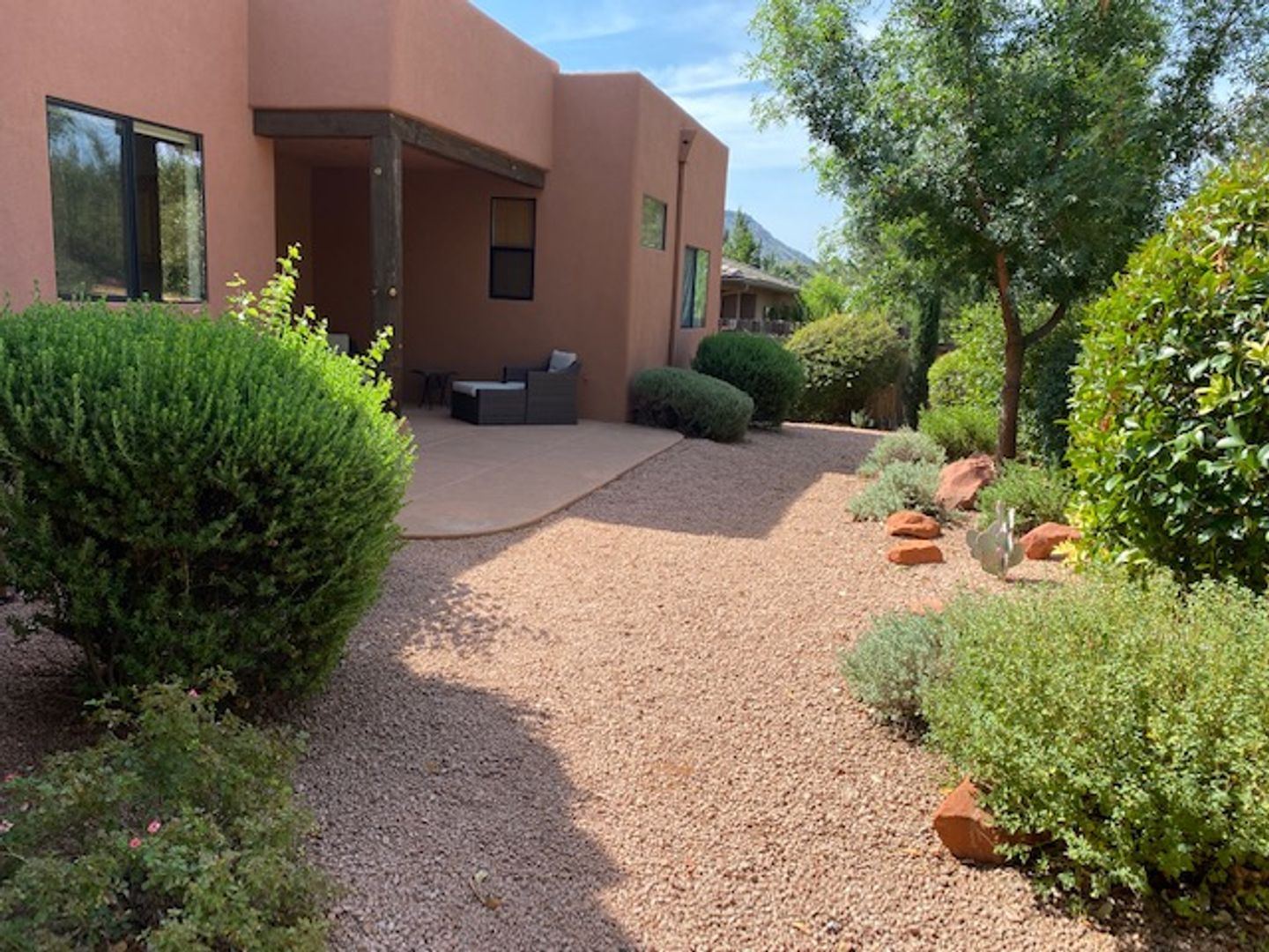 This beautiful updated home features Red Rock views, hardwood flooring and an open floor plan. Kitchen has a breakfast bar, granite counters and newer appliances. The master suite features a large walk-in closet and a bathroom with double sinks and a full size shower. Split floor plan with two additional bedrooms and a full bathroom. Lots of closet space. Spacious laundry room with front load appliances. Nicely landscaped outdoor space with private yard, front and back patio with views. Landscape maintenance is provided. Two car garage. Great location convenient to great restaurants, shopping, hiking and golf. No dogs allowed. One cat is negotiable. Please call to schedule and agent showing: (928) 282-9533