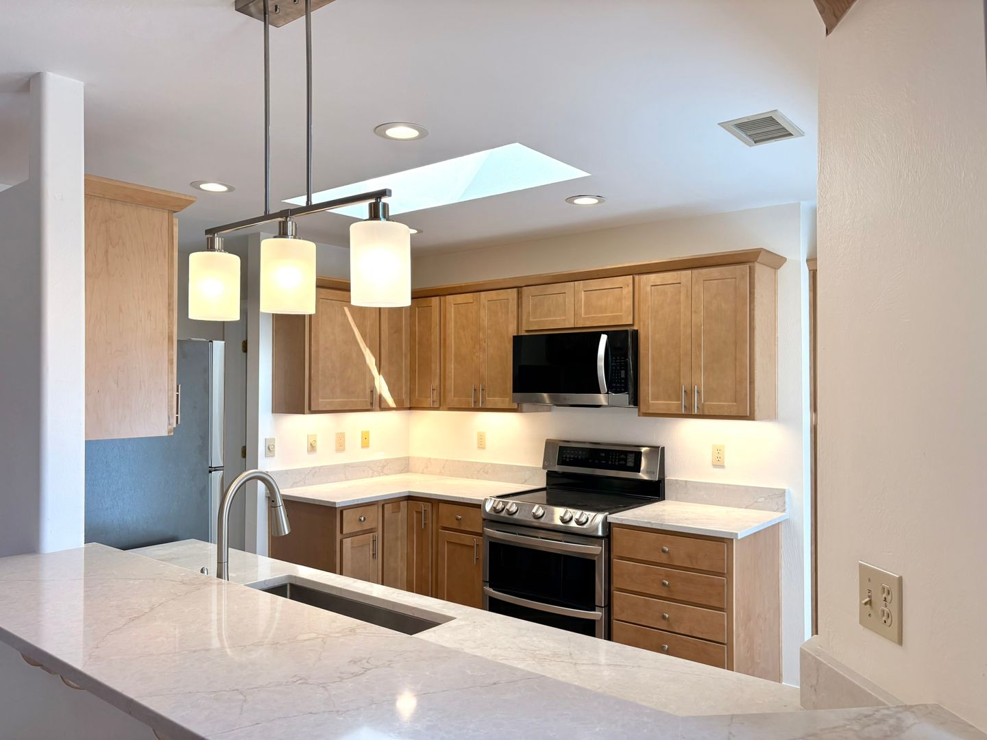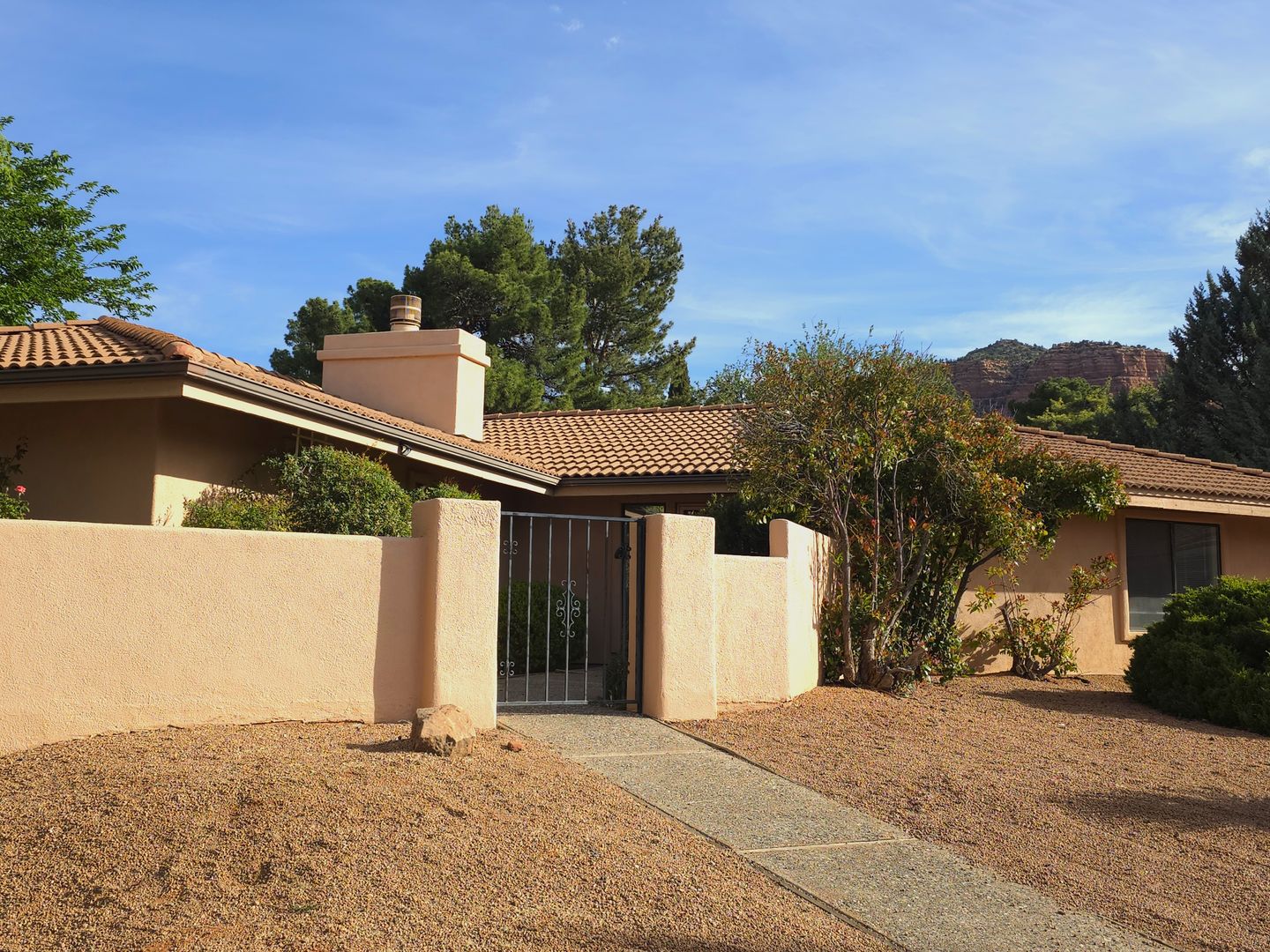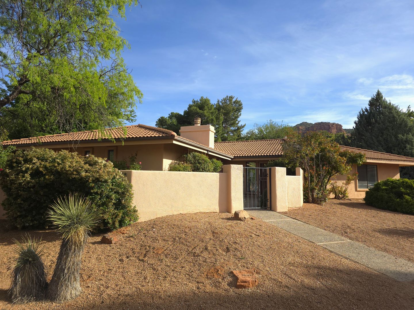 WELCOME TO THIS BEAUTIFULLY UPDATED HOME- BACKING OAK CREEK COUNTRY CLUB GOLF COURSE, WONDERFUL RED ROCK VIEWS, NICE SKYLIGHTS AND MANY WINDOWS THROUGH OUT TO BRING IN THE NATURAL SUN LIGHT, GAS FIREPLACE IN OPEN STYLE LIVING ROOM, VAULTED CEILINGS, EAT-IN KITCHEN WITH NEW MARBLE COUNTERTOPS, NEW CABINETS, AND NEWER APPLIANCES. SPLIT FLOOR PLAN. MASTER SUITE WITH WALK IN CLOSET, BATHROOM WITH DOUBLE SINK, FRESHLY REFINISHED VANITY AND UPDATED CABINETS- BATH WITH SOAKING TUB AND SEPARATE SHOWER. SECOND BATH INCLUDES TILE WALK IN SHOWER. LAUNDRY ROOM WITH BRAND NEW WASHER/DRYER.2 CAR GARAGE WITH WORK BENCH, WALLED IN ENTRY COURTYARD. LANDSCAPING INCLUDED. NO PETS. PLEASE CALL FOR AVAILABILITY AND TO SCHEDULE AN AGENT SHOWING.