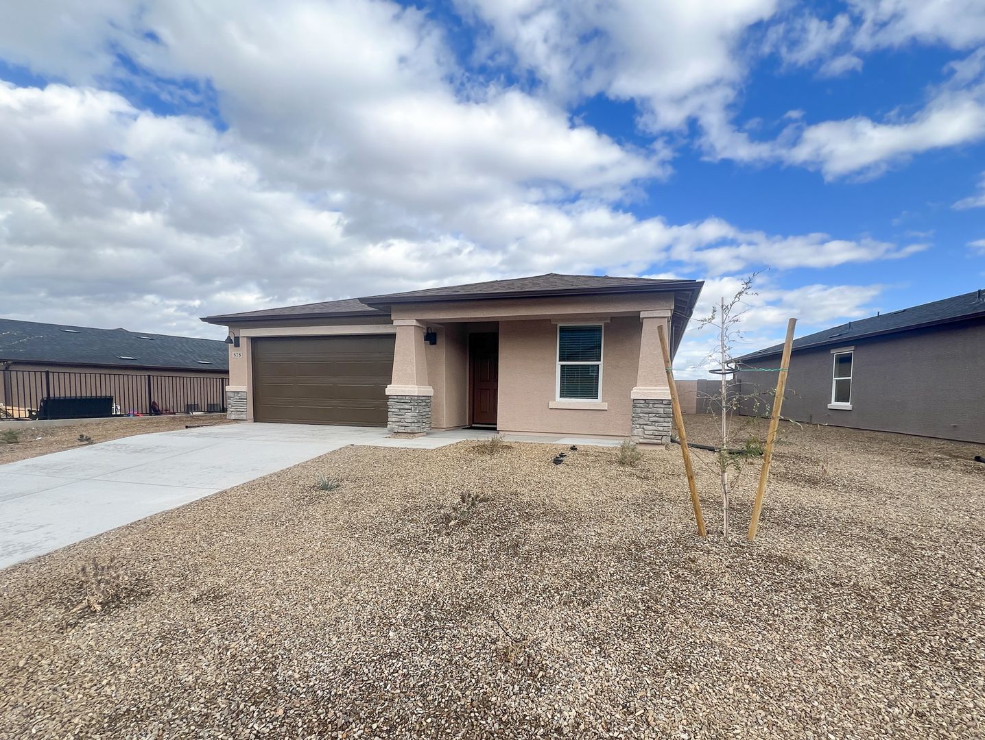2025 New-build / NEVER LIVED IN BEFORE, 3-bedroom and 2-bathroom home in the Mesquite Hills subdivision. Enjoy stunning views of multiple mesas and mountains, including the tops of Sedona, from the living room, master bedroom, and backyard. All brand new appliances including a washer/dryer in its own designated room. This home features an open-concept layout with a fully equipped kitchen, granite countertops, stainless steel appliances, wood-look plank tile flooring, and carpet in the bedrooms. The master bedroom includes an ensuite bathroom with double sinks and a step-in shower, while all bedrooms offer walk-in closets. Conveniently located near shopping, dining, and hiking, this energy-efficient home is equipped with LED lighting and a programmable thermostat. 2 car garage. Tenants pay for electric, water and trash.