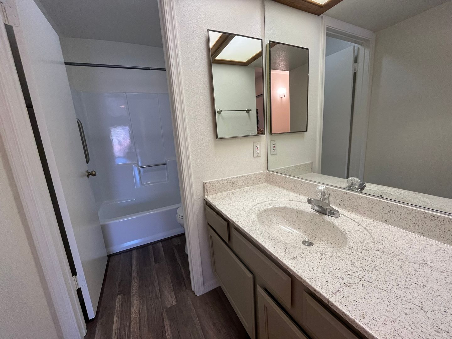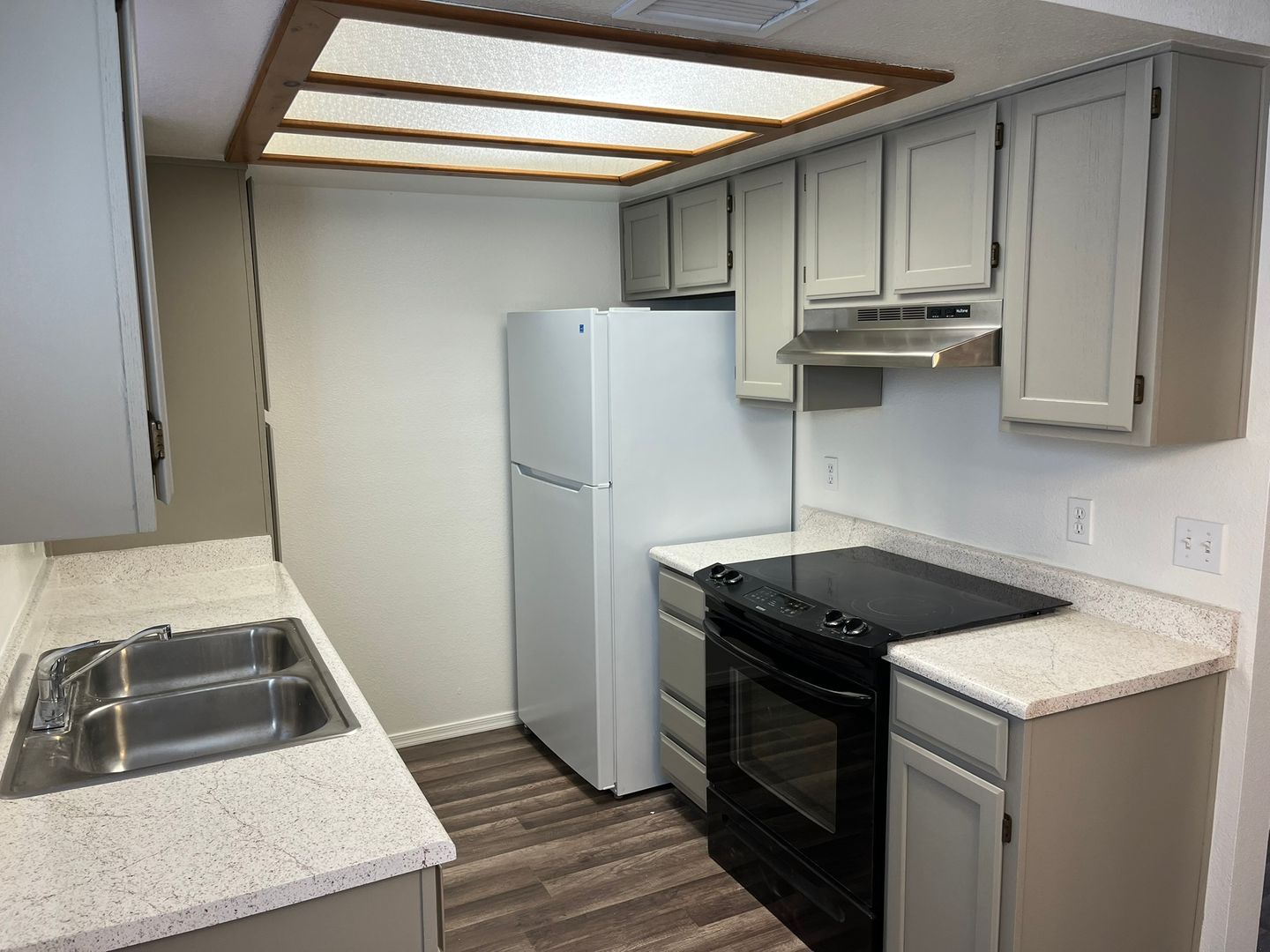 CUTE & UPDATED GROUND LEVEL CONDO. BRAND NEW WOOD INSPIRED VINYL FLOORING THROUGHOUT. NEW PAINT, AND REFINISHED COUNTERTOPS AND CABINETS. BRAND NEW FRIDGE AND WASHER DRYER. LIVING ROOM HAS WOOD BURNING FIREPLACE WITH SLIDING GLASS DOOR TO GIVE YOU ACCESS TO A SMALL PATIO WITH ADDITIONAL STORAGE. BEDROOM HAS PLENTY OF CLOSET SPACE WITH ANOTHER SLIDER LEADING TO THE PATIO. BATHROOM HAS A SINGLE SINK VANITY AND AN ADDITIONAL MAKEUP VANITY. FULL TUB AND SHOWER. ONE COVERED PARKING SPACE WITH ADDITIONAL EXTERIOR STORAGE WITH AMPLE, OPEN PARKING NEARBY. COMPLEX HAS POOL AND TENNIS COURTS, SORRY, NO PETS.