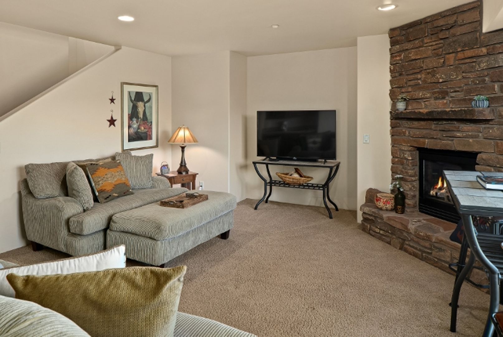 UNFURNISHED, BEAUTIFUL HOME WITH RED ROCK VIEWS IN THE DESIRABLE COMMUNITY OF LAS PIEDRAS. THE SPACIOUS FLOOR PLAN OFFERS PLENTY OF FLEXIBLE LIVING SPACE. ENTRY LEVEL FEATURES A LIVING ROOM WITH KIVA FIRE PLACE, DINING ROOM, KITCHEN WITH BREAKFAST BAR, GRANITE COUNTERS, STAINLESS STEEL APPLIANCES INCLUDING A GAS RANGE. MAIN LEVEL MASTER SUITE WITH WALK IN CLOSET, DOUBLE SINKS SOAKING TUB AND SEPARATE SHOWER. TWO ADDITIONAL BEDROOMS, 2 FULL BATHS AND ONE HALF BATH. ON THE LOWER LEVEL THERE IS A FAMILY ROOM WITH A FIREPLACE, A FURNISHED BEDROOM, AND AN UNFURNISHED BONUS ROOM IDEAL FOR HOME OFFICE OR YOGA ROOM. COVERED DECKS TO ENJOY THE VIEW ON BOTH LEVELS. THERE IS ALSO A LAUNDRY ROOM WITH FULL SIZE APPLIANCES AND A THREE CAR GARAGE ON THE MAIN LEVEL. THE COMMUNITY OF LAS PIEDRAS FEATURES A SEASONAL POOL FOR YOUR ENJOYMENT AND IS CONVENIENT TO RESTAURANTS, HIKING TRAILS, HEALTH CLUBS, GOLF AND SHOPPING, INCLUDING AN UPSCALE GROCERY STORE. TENANT IN RESIDENCE PLEASE CALL TO SCHEDULE AN AGENT SHOWING.