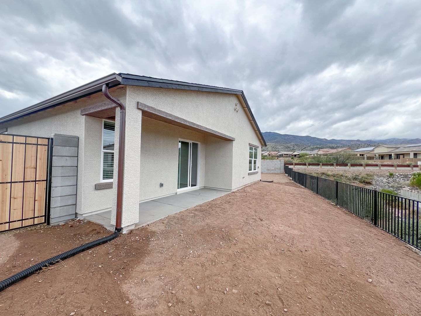 2025 New-build/NEVER LIVED IN BEFORE, 3-bedroom and 2-bathroom home on a corner lot in the Mesquite Hills subdivision. This home features an open-concept layout with a kitchen that includes granite countertops, a large refrigerator with an indoor ice/water dispenser, an above-range microwave, and a dishwasher. The kitchen is fully equipped with stainless steel appliances. Wood-look plank flooring is found throughout, with carpet in the bedrooms. The master bedroom has an ensuite bathroom with double sinks and a step-in shower. The home also includes a 2-car attached garage. Washer/dryer included. The covered back patio overlooks a large wash, providing space from the back neighbors. The backyard is fenced, and the home offers Mingus Mountain views (Gravel in backyard coming soon!) . Conveniently located near shopping, dining, and hiking in Mesquite Hills. Renters Insurance required. Small pet negotiable. Apply online at www.fpmsedona.com or contact the office at 928-325-0146, Monday through Friday, 9 AM to 5 PM.