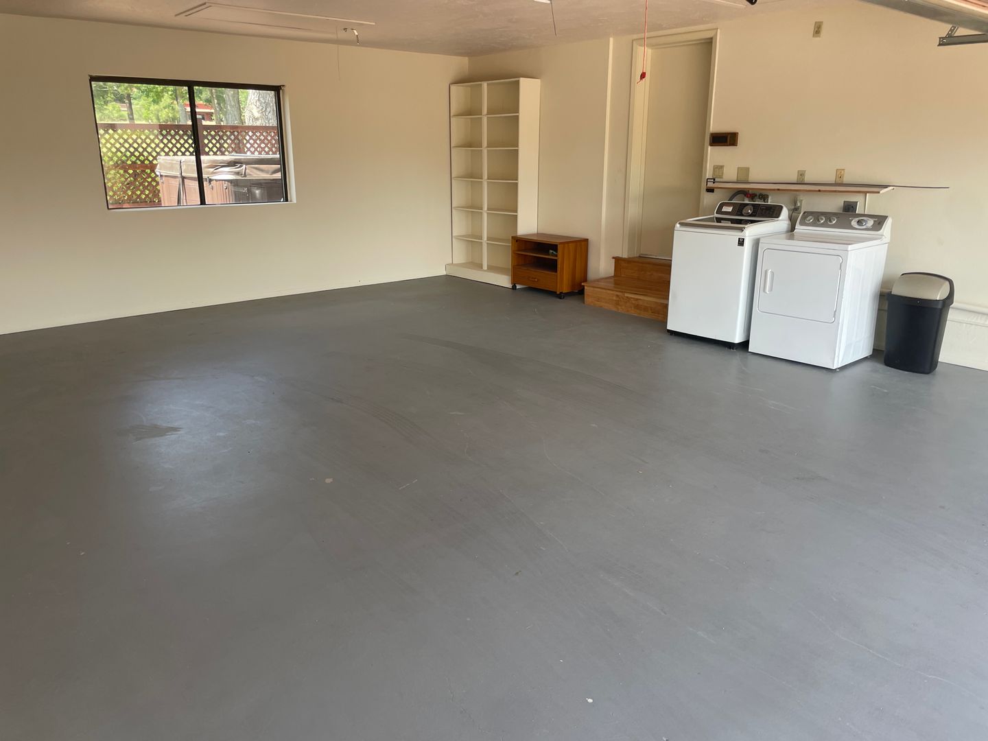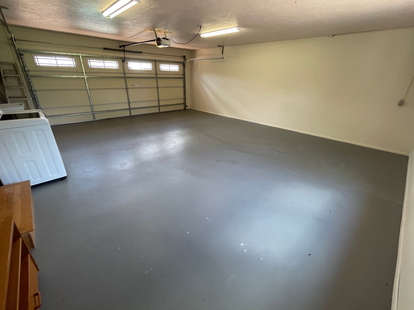 KITCHEN FEATURES NEW STAINLESS STEEL APPLIANCES, AMPLE STORAGE SPACE, AND ACCESS TO 2 CAR GARAGE WITH FULL SIZE WASHER/DRYER, UTILITY SINK, AND STORAGE SHELVES.