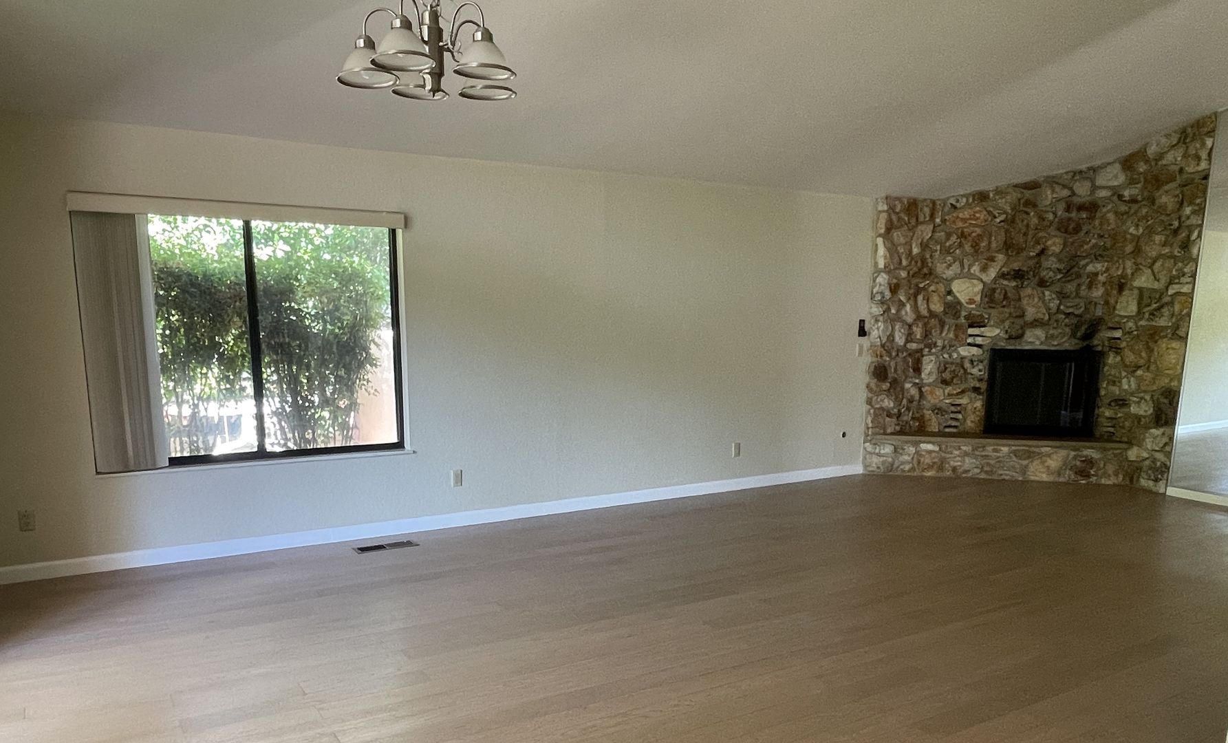 THIS HOME FEATURES VAULTED CEILINGS, GAS FIREPLACE SURROUNDED BY BEAUTIFUL STONE WORK, WET BAR, AND WOOD INSPIRED VINYL FLOORING. 2 LARGE SLIDING GLASS DOORS FROM LIVING ROOM AND KITCHEN LEADS TO LARGE COVERED PATIO AREA SURROUNDED BY MATURE TREES FOR ADDED PRIVACY.