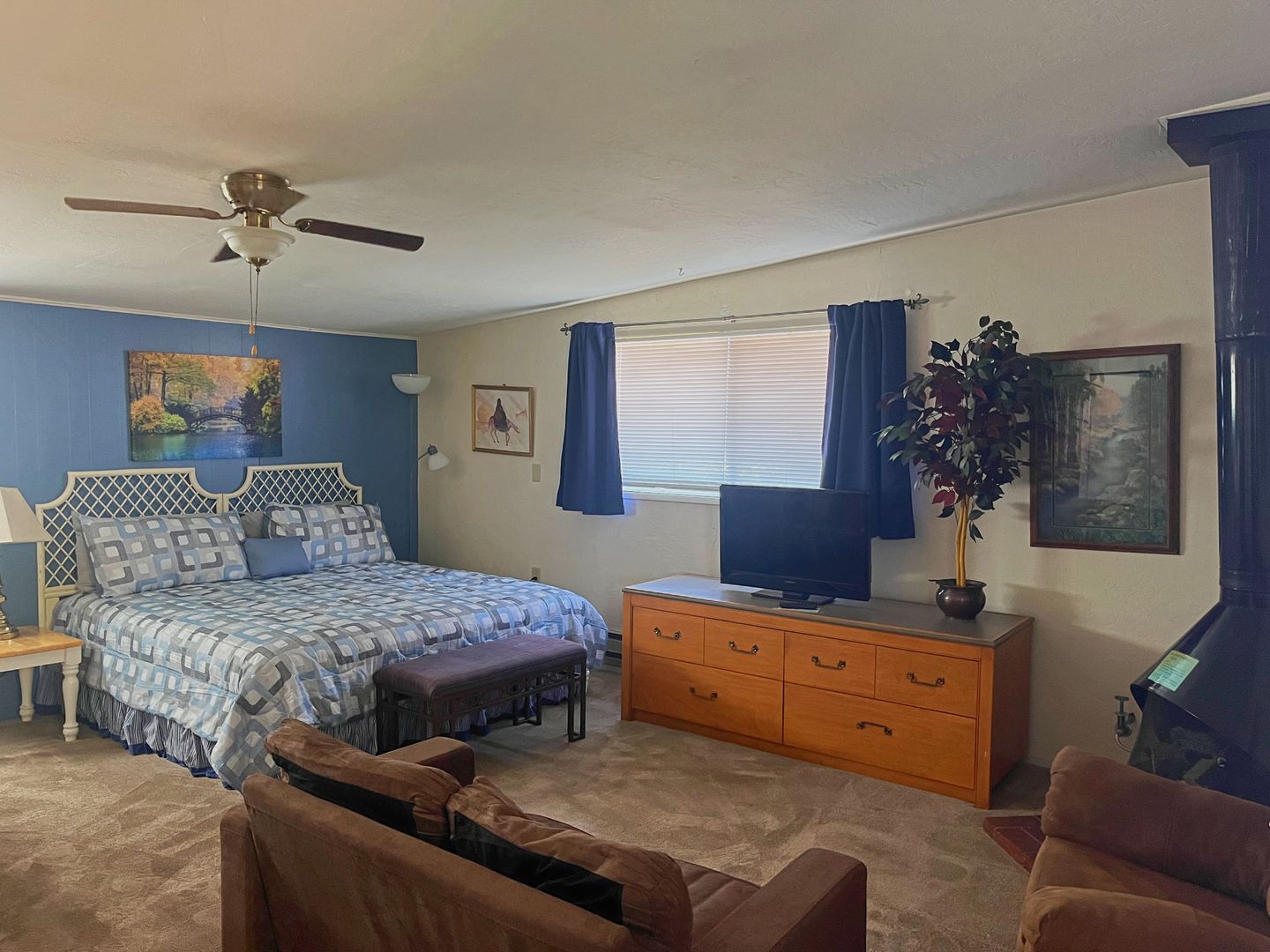 LOCATED IN THE HEART OF UPTOWN, THIS APARTMENT FEATURES A FULL KITCHEN WITH TABLE & CHAIRS, COZY LIVING AREA WITH GAS FIREPLACE, COUCH, KING SIZE BED, AND A FLAT SCREEN TV. RELAX IN THE BEAUTIFUL COMMON AREA OR EXPLORE THE GREAT LOCATION, WITH A SHOPS, RESTAURANTS AND ATTRACTIONS ONE BLOCK AWAY. OTHER FEATURES INCLUDE WALL HEATING & AC UNIT, RESERVED PARKING FOR ONE CAR, AND A SHARED COMMUNITY WASHER & DRYER. NO PETS.