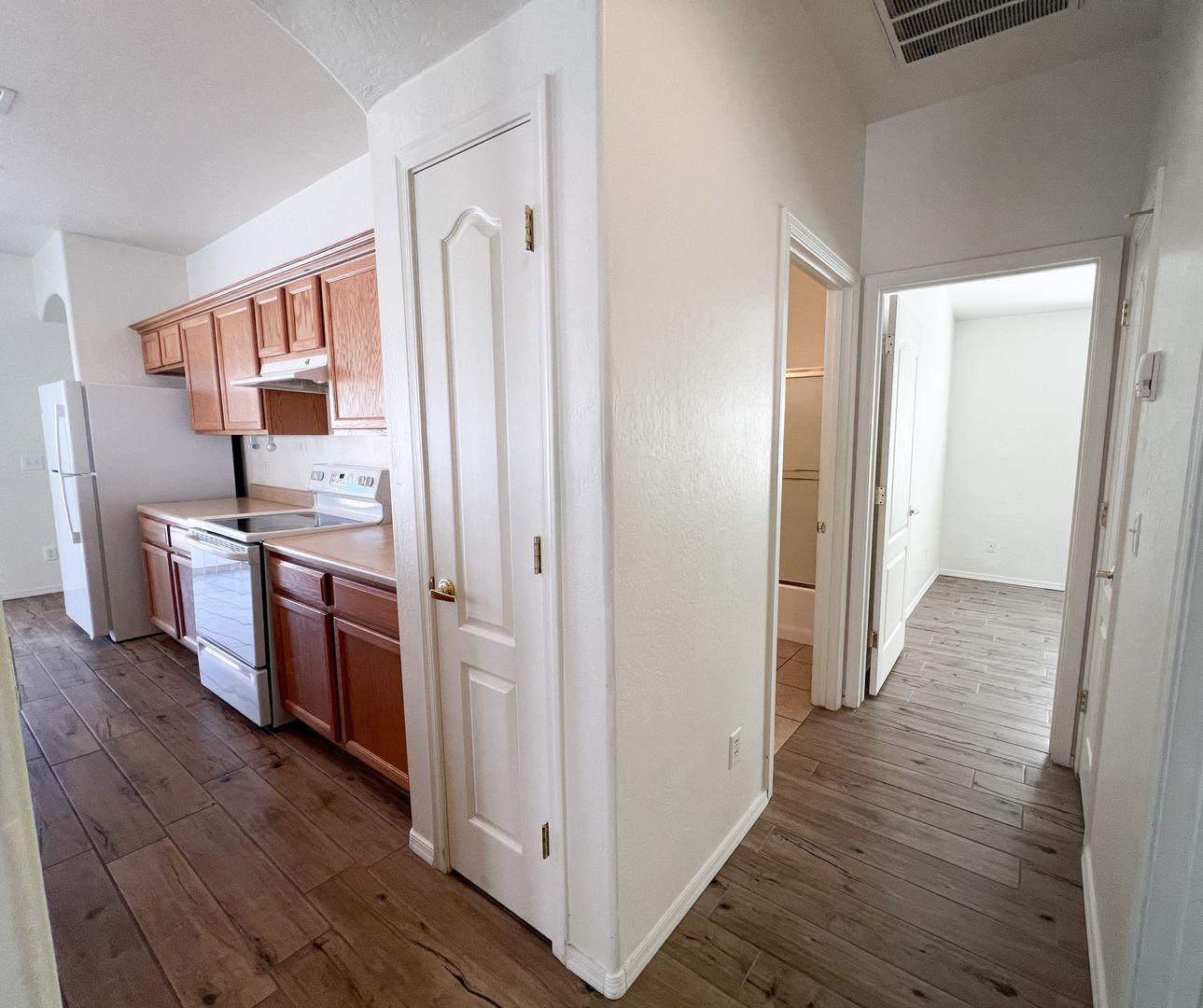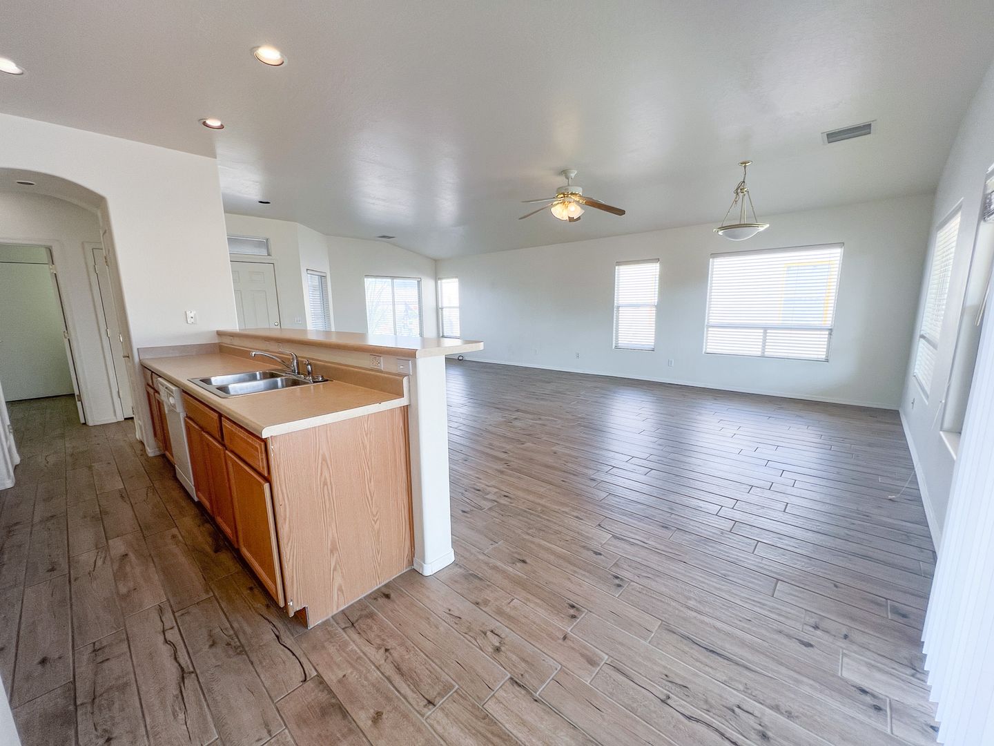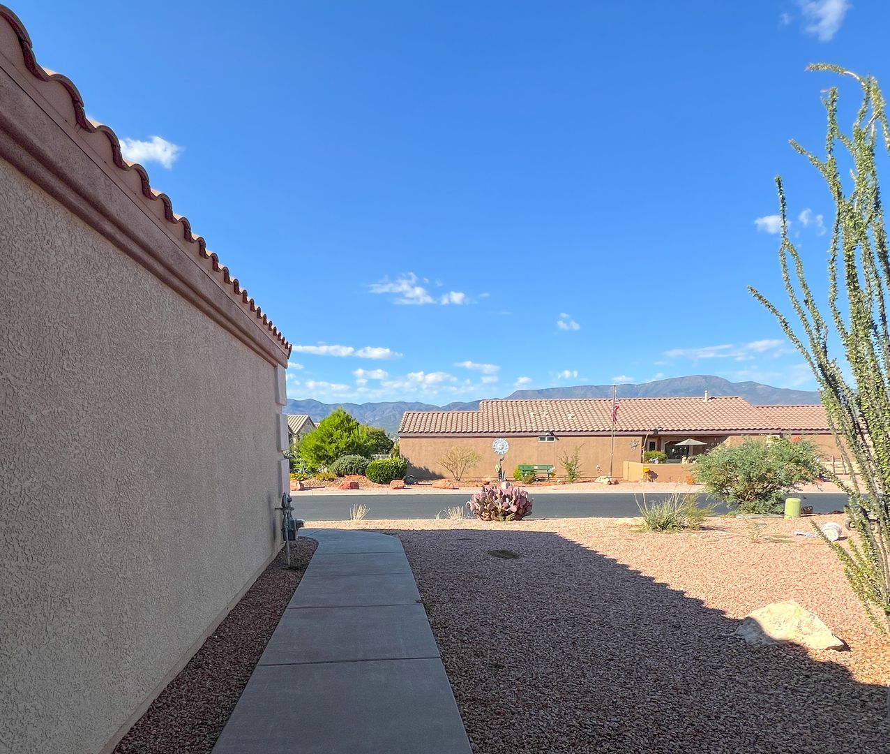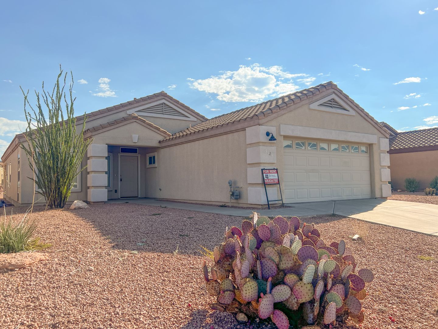 Single-level 2 bedroom, 2 bathroom home with an open floor plan, featuring ceiling fans in the main living area and master bedroom. The house boasts wood plank tile flooring throughout. Located in the gated community of Amante at Verde Santa Fe, residents enjoy access to a community pool, fitness room, and clubhouse. The master bedroom includes a large walk-in closet, an ensuite bathroom with dual sinks, and a step-in shower. The guest bathroom offers a tub/shower combo. The property also has a covered back patio, mountain views, and an attached 2-car garage. AC/Heat. Utilities for gas, electricity, and water are tenant's responsibility, while the owner covers sewer and HOA fees. Additional cost may apply for clubhouse use. Renter’s insurance is required. Pet Negotiable. Apply online at www.fpmsedona.com or call 928-325-0146.